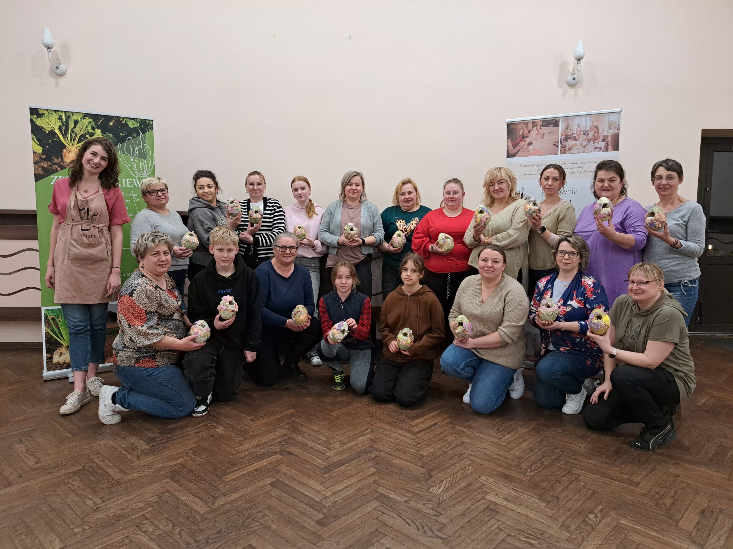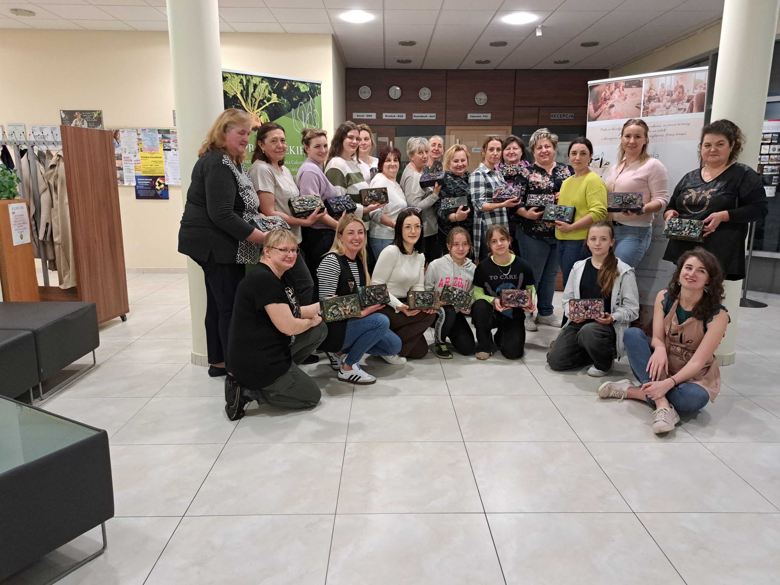 Tydzień później, 27–28 marca, kolejne warsztaty odbyły się w Pawłowiczkach i Zakrzowie, gdzie gościliśmy kolejną wspaniałą artystkę – Panią Natalię Niedostatkiewicz z pracowni NNart. Również w tych miejscowościach odbyły się dwie tury zajęć dziennie, a łącznie w ciągu dwóch dni udział wzięło około 100 Pań.